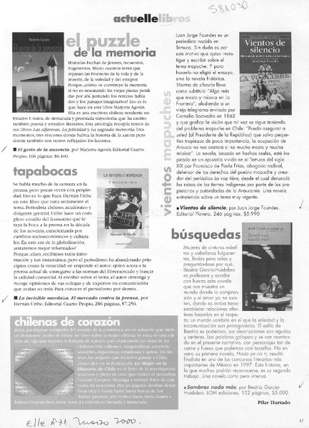 Autores chilenos - Agosín, Marjorie - García Huidobro, Beatriz - Faundes, Juan Jorge - Vientos de silencio - Sombras nada más - Gesto de la ausencia - Uribe, Hernán - Invisible mordaza