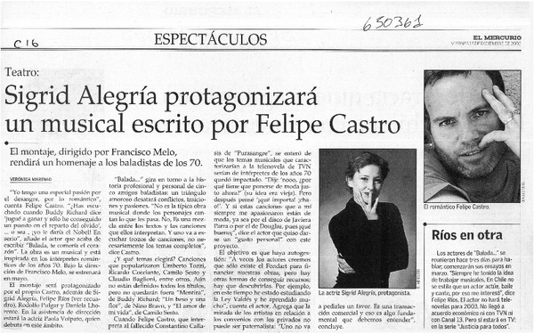 Sigrid Alegría protagonizará un musical escrito por Felipe Castro [artículo] Verónica Marinao