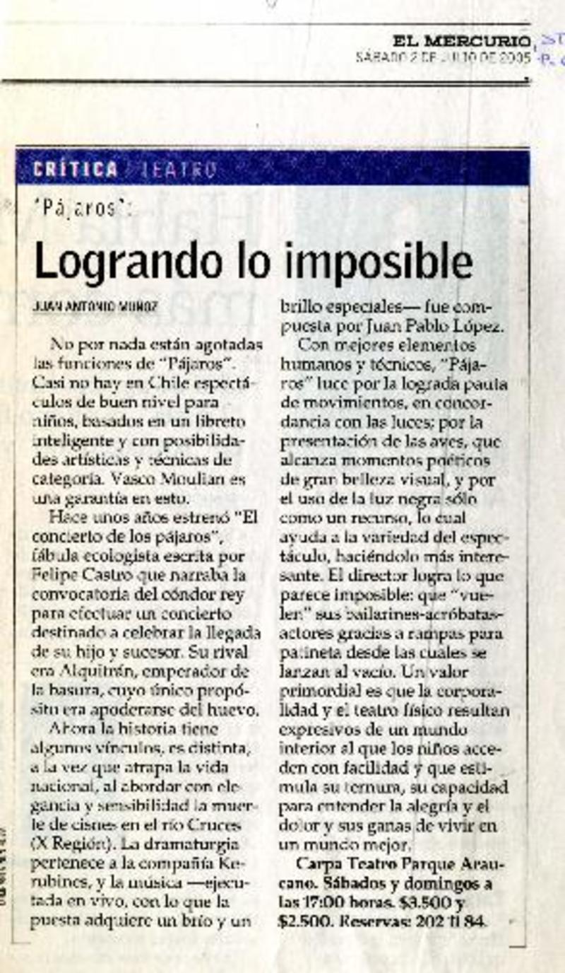 Logrando lo imposible [artículo]Juan Antonio Muñoz.