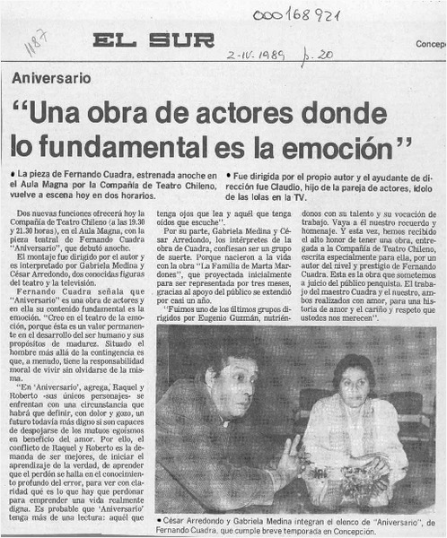 "Una Obra de actores donde lo fundamental es la emoción" [artículo].