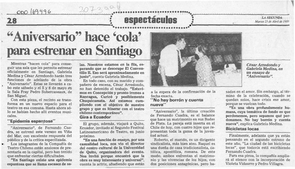 "Aniversario" hace "cola" para estrenar en Santiago [artículo].