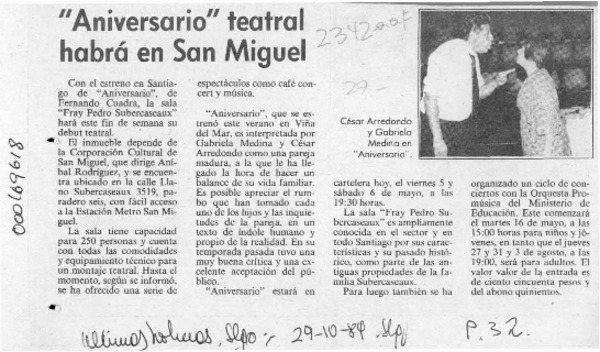 "Aniversario" teatral habrá en San Miguel [artículo].