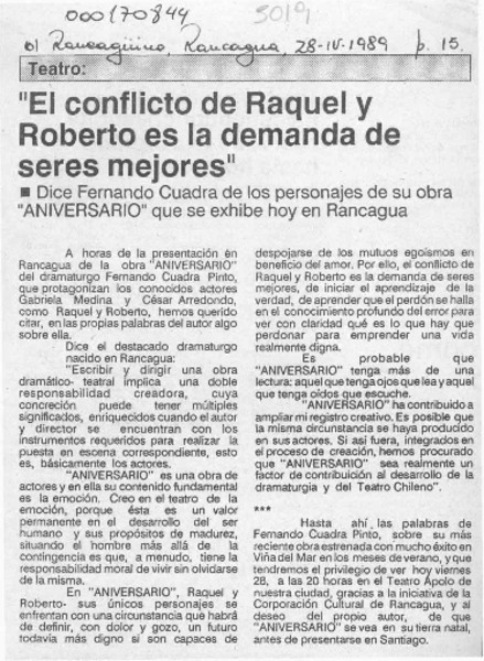 "El conflicto de Raquel y Roberto es la demanda de seres mejores" [artículo].