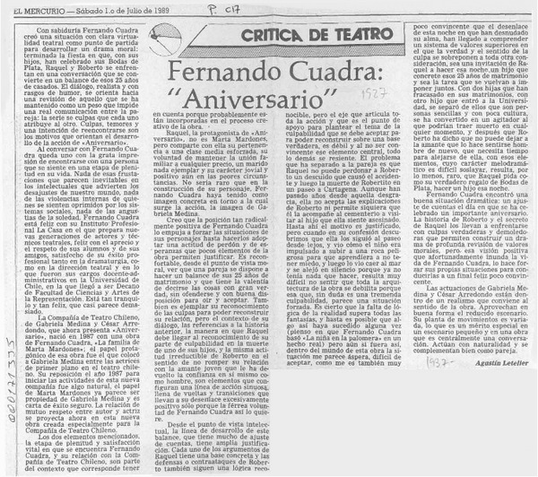 Fernando Cuadra, "Aniversario" [artículo] Agustín Letelier.