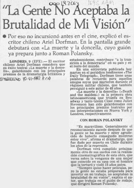 "La Gente no aceptaba la brutalidad de mi visión" [artículo]