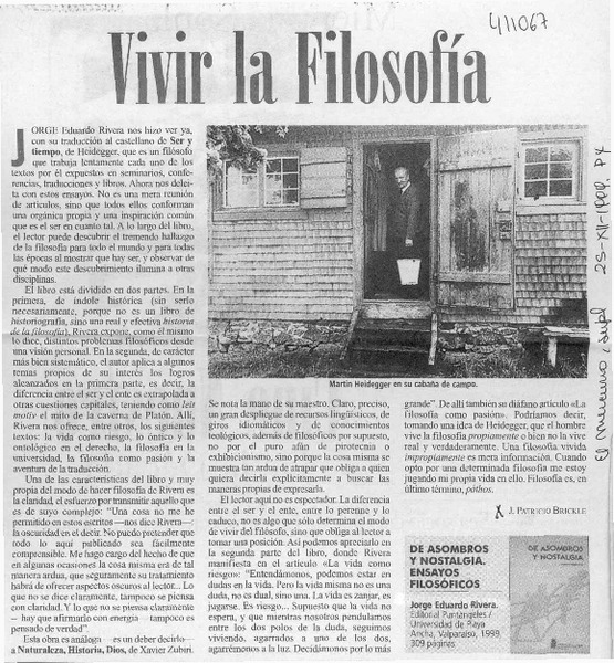 Heidegger y Zubiri, Jorge Eduardo Rivera [artículo] Rodrigo Figueroa Weitzman.