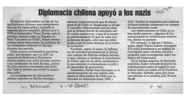 Diplomacia chilena apoyó a los nazis [artículo]