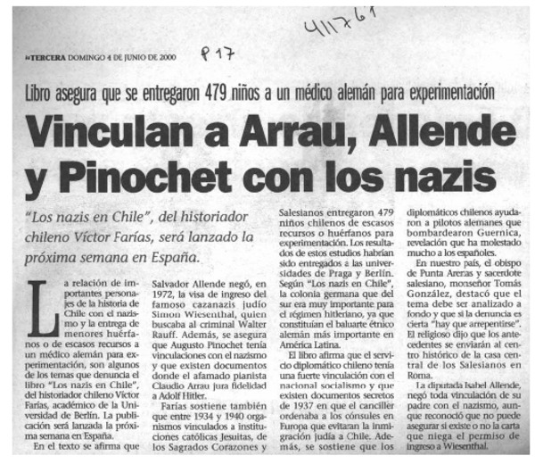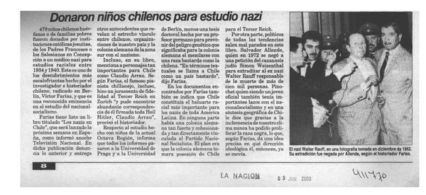 Donaron niños chilenos para estudio nazi [artículo]