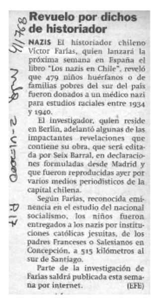 Revuelo por dichos de historiador [artículo]