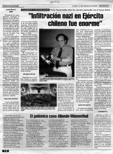 "Infiltración nazi en Ejercito chileno fue enorme" [artículo] Leonardo Miranda G.