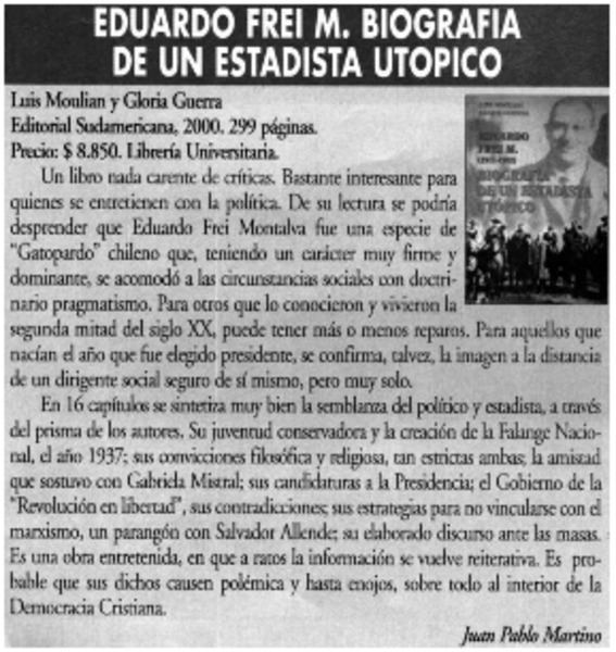 Eduardo Frei M. Biografía de un estadista utopico [artículo] Juan Pablo Martino