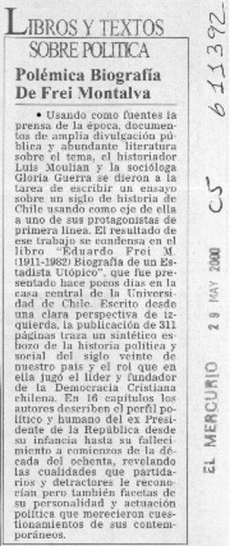 Comentario al libro "Eduardo Frei M. (1911-1982) biografía de un estadista utópico" de Luis Moulián y Gloria Guerra [artículo]