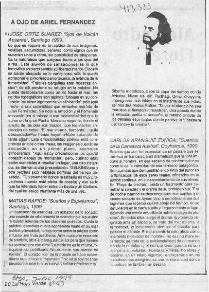 Autores chilenos - Rafide, Matías - Sueños y espejismos - Aranguiz Zúñiga, Carlos - Cuentos de la Carretera Austral - Ortiz Suárez, José - Ojos de volcán ausente