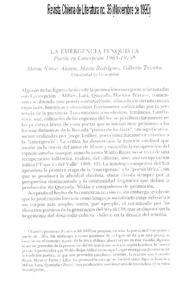 La emergencia penquista. [artículo] María Nieves Alonso, Mario Rodríguez y Gilberto Triviños