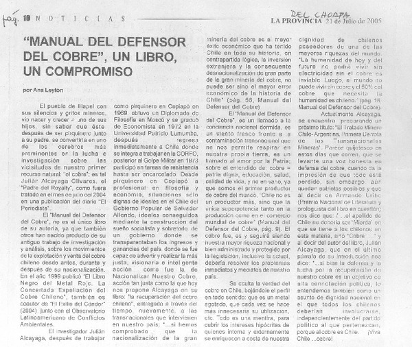 "Manual del defensor del cobre", un libro, un compromiso [artículo] Ana Leyton.