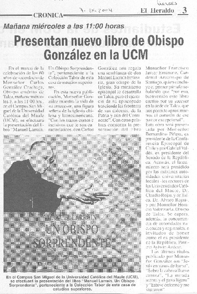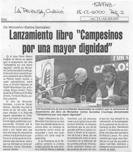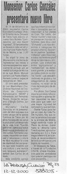 Lanzan libro sobre Obispo Carlos González [artículo]