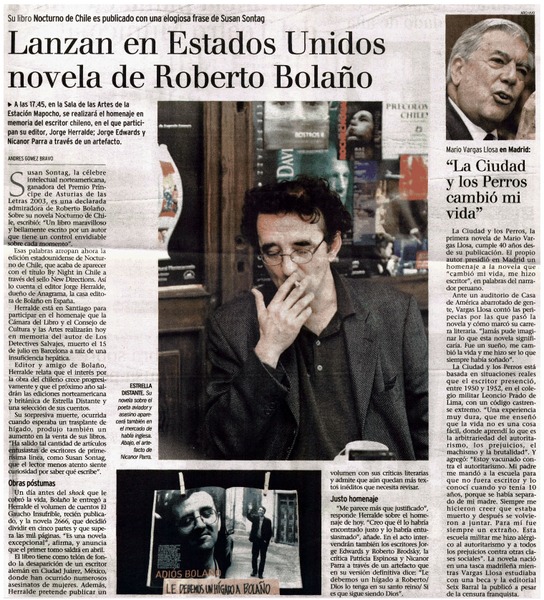 Lanzan en Estados Unidos novela de Roberto Bolaño [artículo] Andrés Gómez.