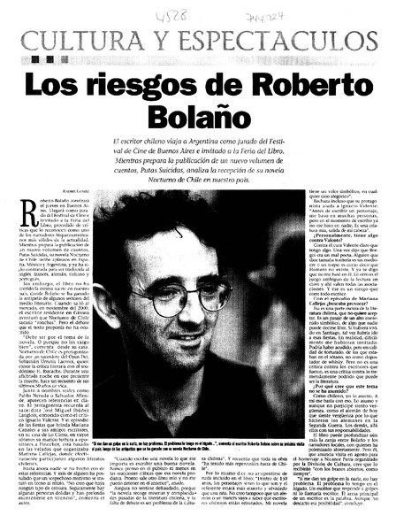Los riesgos de Roberto Bolaño [artículo] Andrés Gómez.