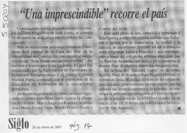 Presentan en Concepción libro sobre Sola Sierra. [artículo]