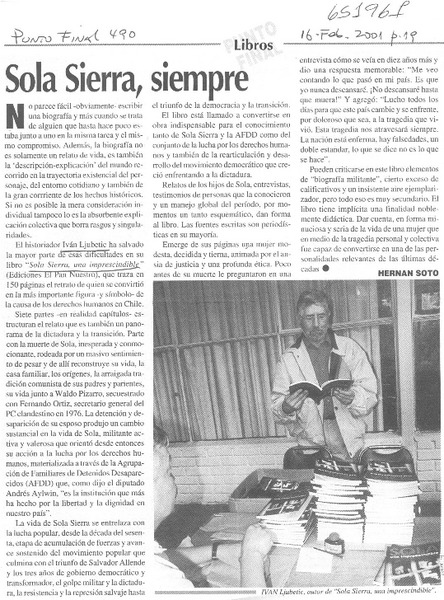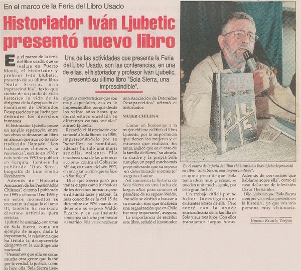 Autores chilenos - Ljubetic, Iván - Sola Sierra, una imprescindible