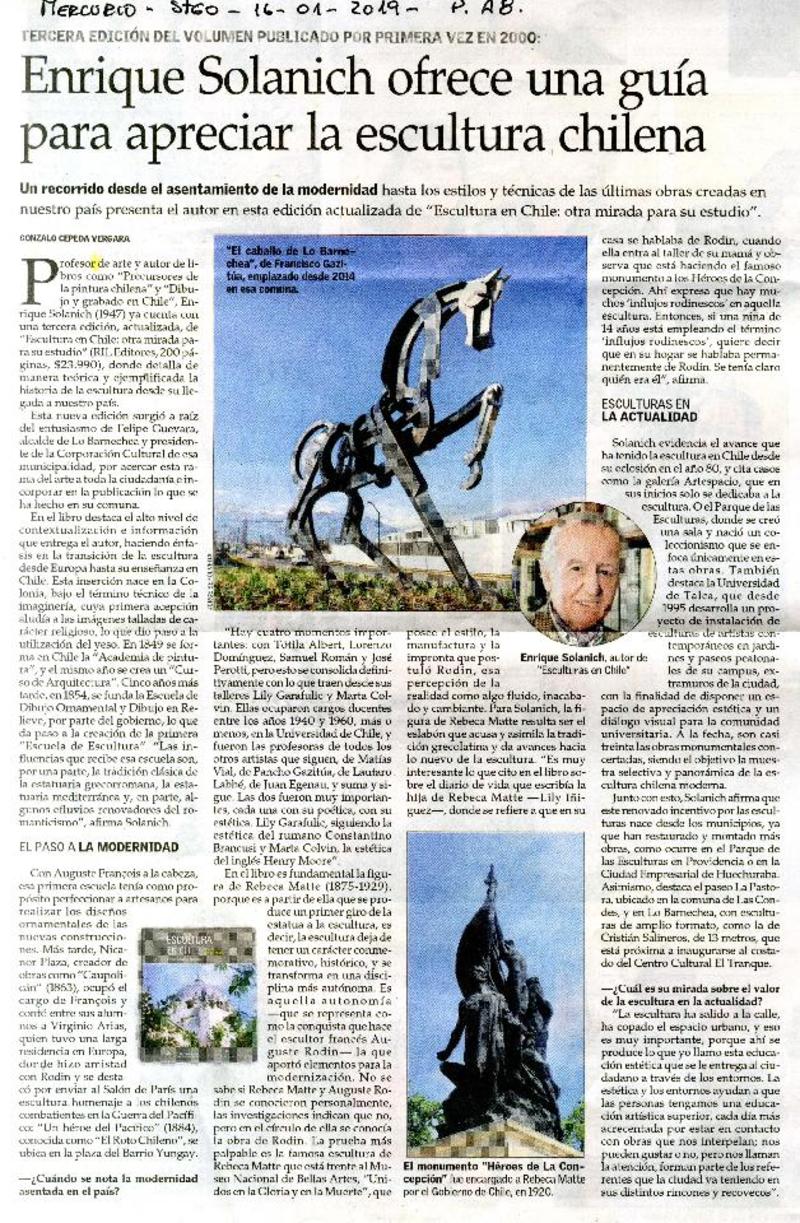 Enrique Solanich ofrece una guía para apreciar la escultura chilena [artículo] Gonzalo Cepeda Vergara.