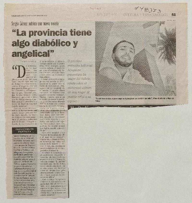 La provincia tiene algo diabólico y angelical" [artículo] Andrés Gómez B.