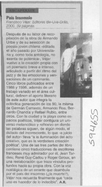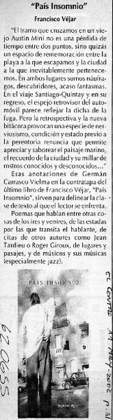 Autores chilenos - Véjar, Francisco - País insomnio