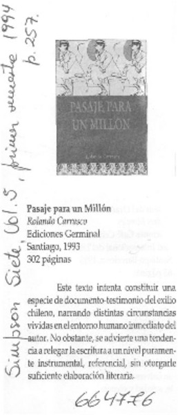 Autores chilenos - Carrasco, Rolando - Pasaje para un millón