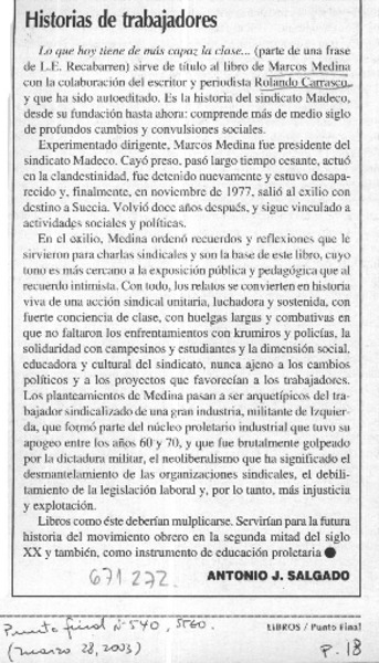 Historias de trabajadores [artículo] Antonio J. Salgado.