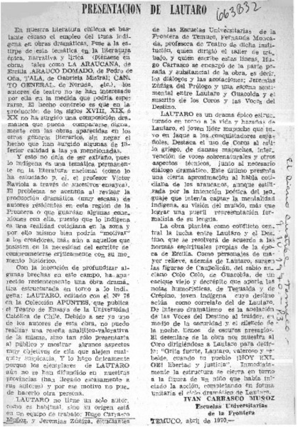 Presentación de Lautaro [artículo] Iván Carrasco Muñoz.