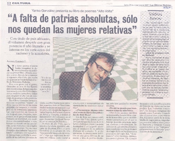 "A falta de ptrias absolutas, sólo nos quedan las mujeres relativas" [artículo] Alfonso Cortínez T.