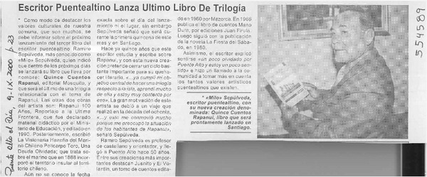 Escritor puentealtino lanza último libro de trilogía [artículo]