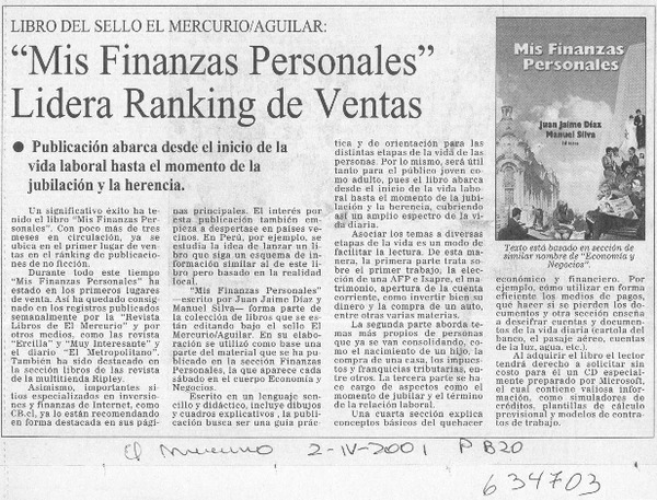 "Mis finanzas personales" lidera ranking de ventas [artículo]