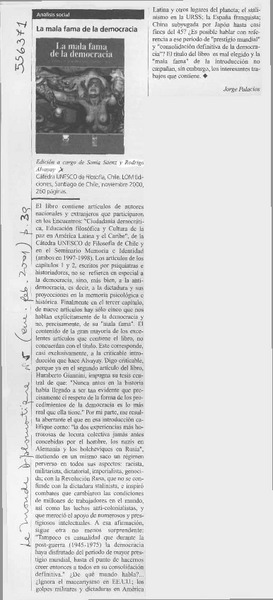 Autores chilenos - Alvayay, Rodrigo - Mala fama de la democracia - Sáenz, Sonia