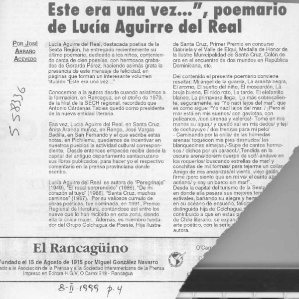Este era una vez, poemario de Lucía Aguirre del Real [artículo] José Arraño Acevedo