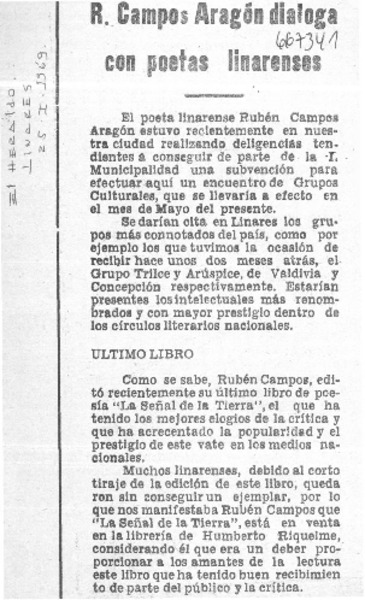 Poeta Rubén Campos Aragón en Linares [artículo].