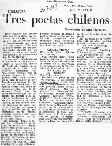 Tres poetas chilenos : [artículo] Julio Flores V.