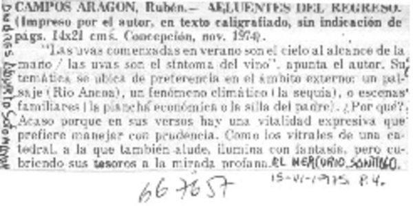 Autores chilenos - Campos Aragón, Rubén - Afluentes del regreso