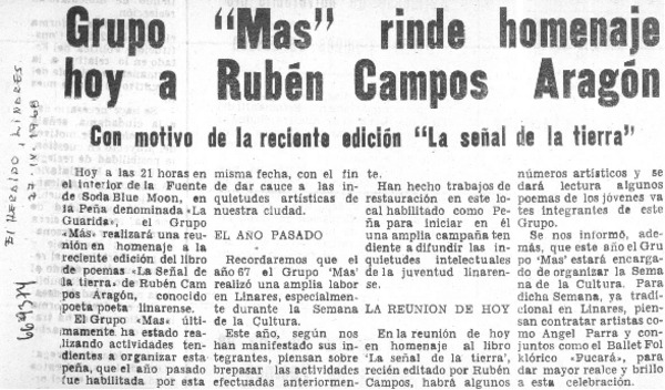 Grupo "Mas" rinde homenaje hoy a Rubén Campos Aragón. [artículo]