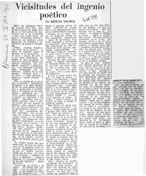 Vicisitudes del ingenio poético [artículo] Ignacio Valente.