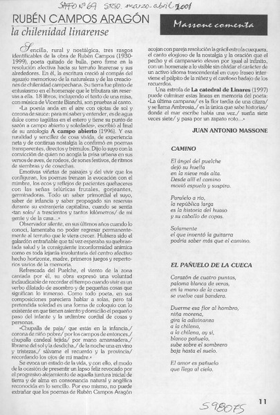 Rubén Campos Aragón la chilenidad linarense [artículo] Juan Antonio Massone