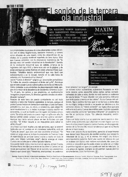 José Angel Cuevas, Maxim, otro rock en sepia [artículo] Yanko González