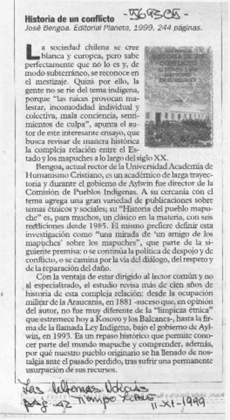 Autores chilenos - Bengoa Galdona, José - Historia de un conflicto