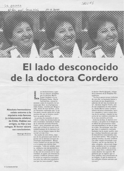 El lado desconocido de la doctora Cordero [artículo] Rodrigo Alvarez