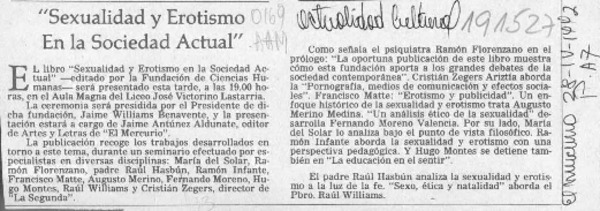 "Sexualidad y erotismo en la sociedad actual" [artículo].