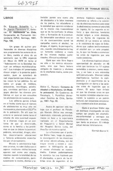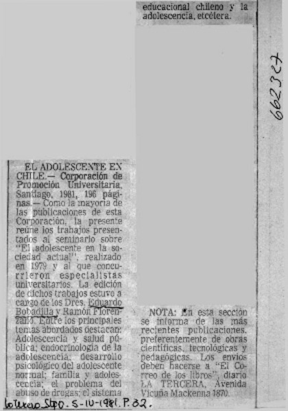 Florenzano, Ramón - Autores chilenos - Adolescente en Chile - Bobadilla, Eduardo