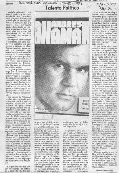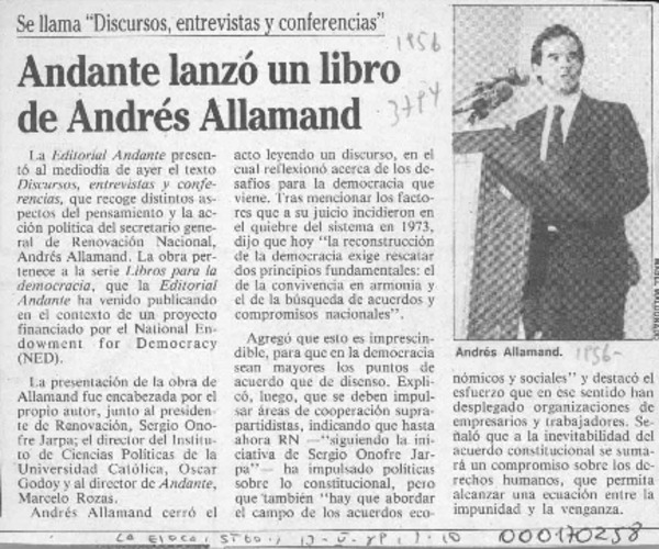 ALLAMAND, ANDRES - DISCURSOS, ENTREVISTAS Y CONFERENCIAS