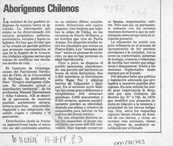 Aborígenes chilenos [artículo].