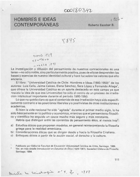 Hombres e ideas contemporáneas [artículo] Roberto Escobar B.