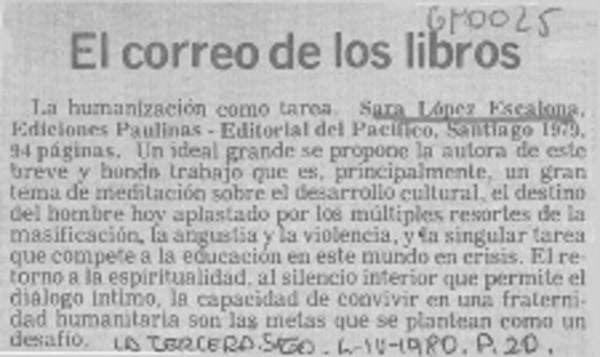 Humanización como tarea - López Escalona, Sara - Autores chilenos